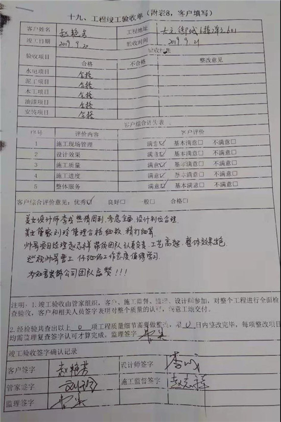 只有把“客戶滿意度”當(dāng)成企業(yè)發(fā)展的生命線、立身的根本,服務(wù)好每一位客戶,才不辜負(fù)他們的信任,更多客戶才會(huì)“循香而來”,才有機(jī)會(huì)體驗(yàn)知音的專業(yè)設(shè)計(jì)、精湛施工、環(huán)保材料、優(yōu)質(zhì)售后等一體化服務(wù)。