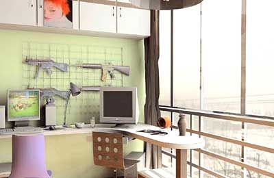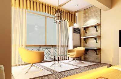 對(duì)于兩居室的住房來(lái)說(shuō),想要書(shū)房只能靠陽(yáng)臺(tái)來(lái)布置了。在陽(yáng)臺(tái)墻面立一整體書(shū)柜,下部設(shè)計(jì)成寫(xiě)字桌面,頂部懸一伸縮式吊燈,在另一側(cè)設(shè)茶幾坐椅或逍遙椅,既可在此與友人敘談,書(shū)寫(xiě)自己的人生,同時(shí)疲乏時(shí)還可放松心情。由于陽(yáng)臺(tái)的溫度普遍比室內(nèi)高,所以應(yīng)該注意陽(yáng)臺(tái)的通風(fēng)及溫度的調(diào)節(jié),以免夏季持續(xù)的高溫造成書(shū)房家具的變形與干裂。